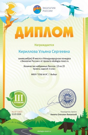 социально активного отношения к природе, формированию активной жизненной позиции по сохранению природных богатств.